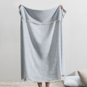 Cinder Mist is our most spirited new throw, named for its cinder-bright flecks that look lit from within against a solid, misty backdrop. Crafted in Italy from a refined cotton wool–silk blend, it delivers an energetic texture with real presence. Finished with eyelash fringe for a modern edge, this piece stands out instantly—anywhere and everywhere.